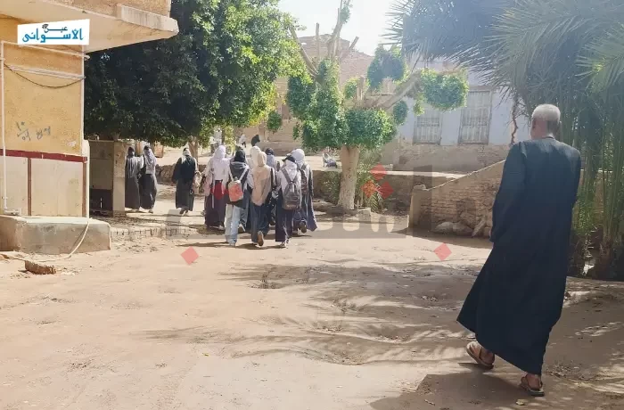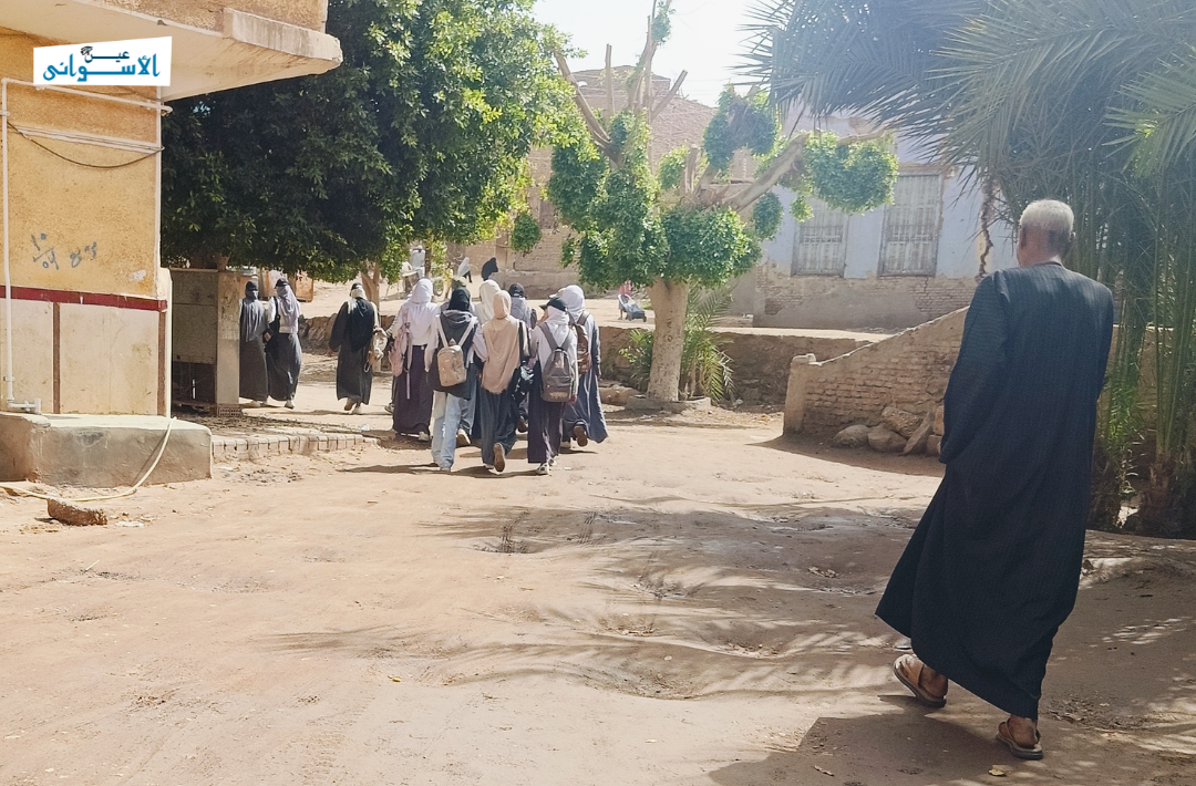 تصوير: هاجر أحمد - طالبات مدرسة إدفو الصناعية بعد نهاية الامتحان