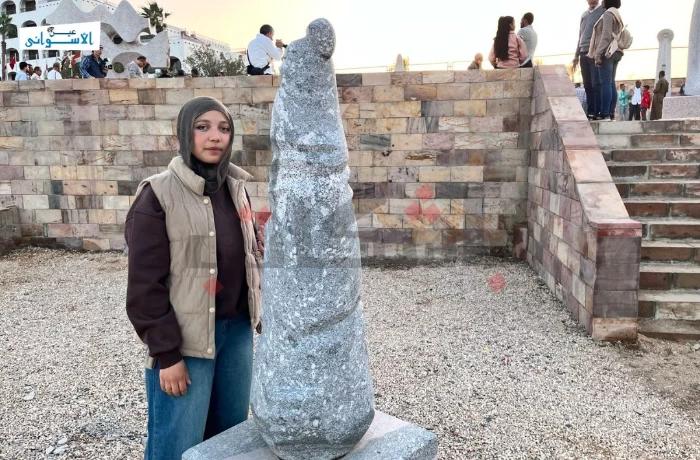 أما أميرة محمد، مشاركة ومعيدة بكلية الفنون الجميلة بجامعة أسيوط، موضحةً أن هذه مشاركتها الأولى وقدمت تمثالًا بعنوان "الحارس" يمثل عنصرًا آدميًا بأسلوب هندسي مستوحى من العمارة المصرية القديمة باستخدام الجرانيت الأحمر الأسواني.