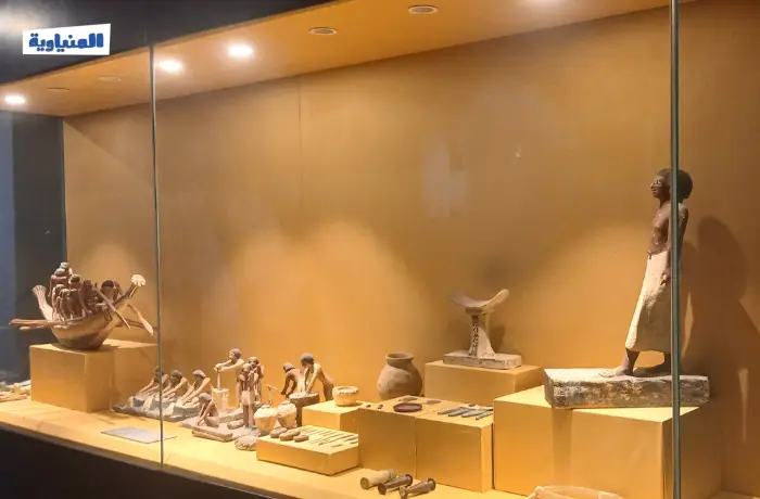 بعد أحداث التدمير يوم 14 أغسطس عام 2013 استرجعنا جزء من المسروقات، بالإضافة إلى أننا تسلمنا بعض القطع الأثرية من مخازن منطقتي الأشمونين والبهنسا، وتحوّل سيناريو العرض؛ تختص الصالة الأولى بعرض مقتنيات تعبر عن الحياة اليومية للمصري القديم، وتضم أدوات المأكل والمشرب والإضاءة والحلي وأدوات الصناعات المهنية والحرفية.