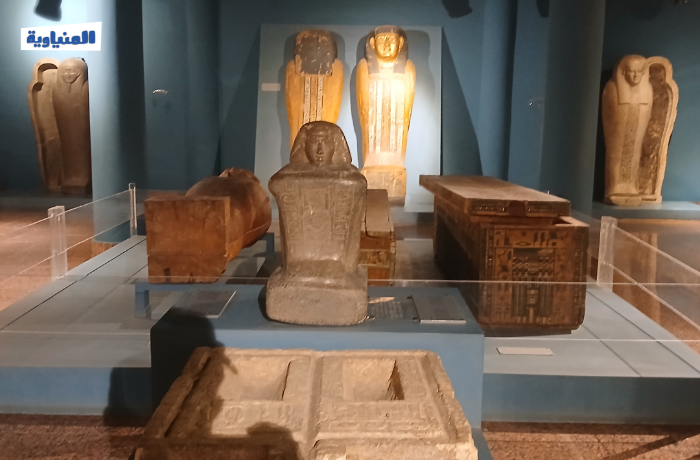أما الصالة الثانية فتتناول مقتنيات عن الحياة الجنائزية للمصري القديم، وتضم توابيت الدفن، و"فاترينات" تضم معبودات المصري القديم، وأدوات الدفن والتحنيط.