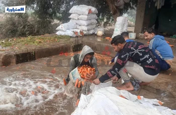 في ساعات الصباح الباكر، كان الضباب يملأ أجواء قرية بني أحمد الغربية وسط برودة شديدة، ورغم هذا الجو القارس، كان العمال يتجمعون في مغسلة الجزر، يواصلون عملهم داخل الأحواض المملوءة بالجزر والمياه الباردة.