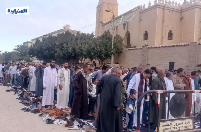 وسط أجواء من البهجة، أدى آلاف المصلين من محافظة المنيا صلاة عيد الفطر صباح اليوم في مساجد وساحات المحافظة.