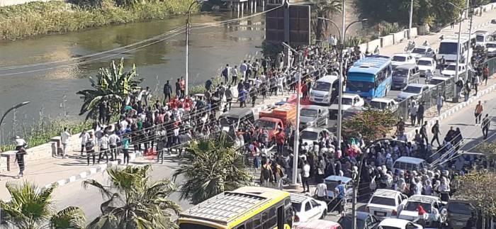 وهتف طلاب الجامعة خلال المظاهرات: “يا اللي ساكت ساكت ليه بعت الأقصى ولا إيه.. بالروح نفديك يا أقصى”.
