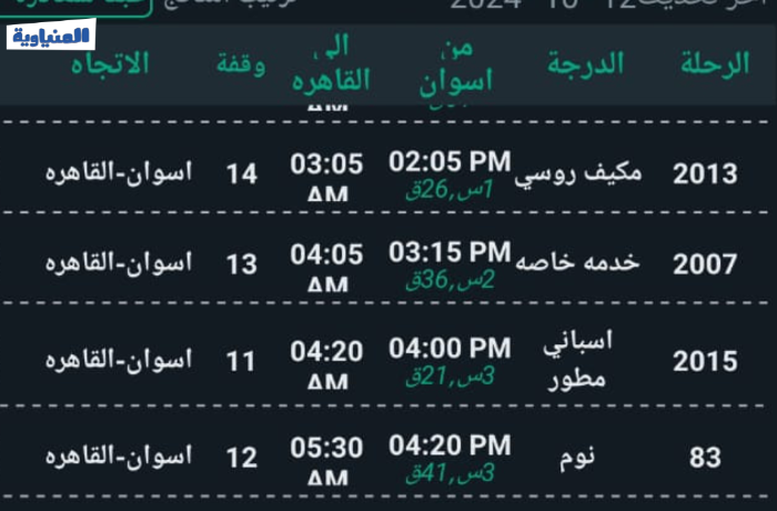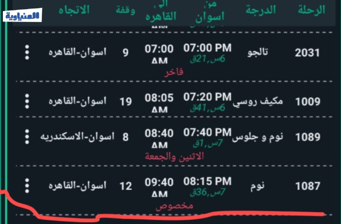 ووفقًا للمواعيد السابقة، تحرك قطار النوم رقم 1087، تحرك من أسوان في الثامنة والنصف من مساء السبت، وكان من المفترض وصوله إلى القاهرة في حوالي العاشرة إلا ربع من صباح اليوم الأحد.