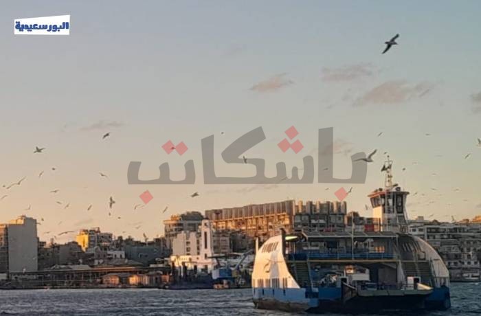 تصوير: رحمة ياسر - طيور النورس تحلق فوق معدية بورفؤاد