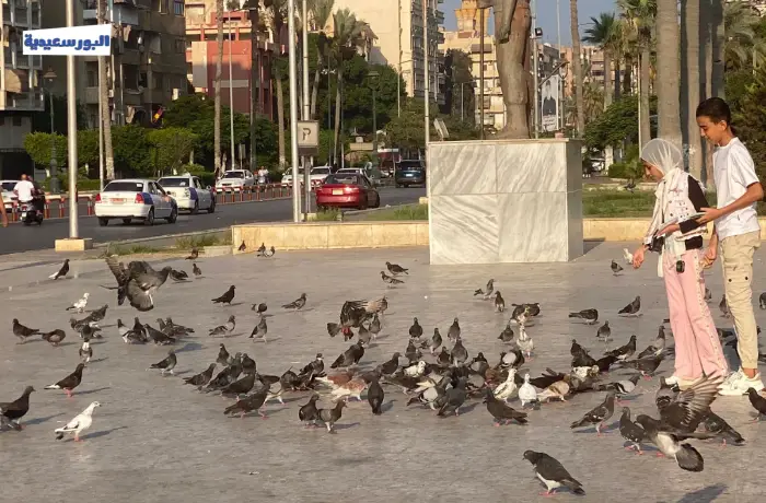 اعتادت طيور الحمام بكل أنواعها وأشكالها في الانتشار داخل الحديقة، كما اعتاد الأهالى الذهاب للنزهة أثناء تواجد الحمام في أوقات غروب الشمس ساعين لإطعام أسراب الطيور والمرح معها، فضلًا عن التقاط الصور التذكارية في تلك اللحظات السعيدة.