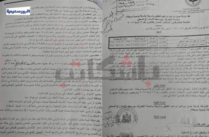 وتحققت "البورسعيدية" من معلومة استئجار بحيرة المنزلة، وحصلت من مصدر خاص على عقد شركة باسم "شركة حسن إبراهيم إبراهيم العفيفي وشريكه"، والسمة التجارية: "بورسعيد للاستزراع السمكي.. شركة توصية بسيطة"؛ بغرض إنشاء مشروع استثماري لتشغيل وإقامة مزارع سمكية ببحيرة المنزلة، وذلك بترخيص من حكومة جمهورية مصر العربية.