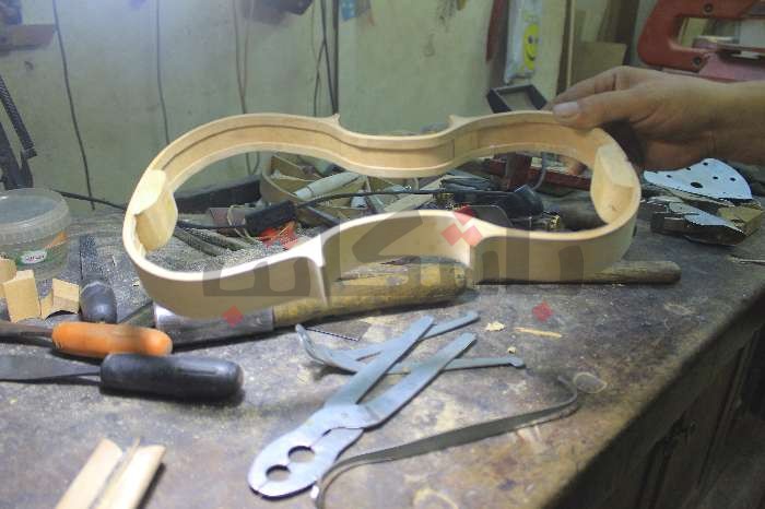“I used to be an antiques maker. I love sculpting and bending wood to my will. I think I am a wood expert. I decided to enter the field of musical instrument making when I was twenty years old, when my son Mario asked me to buy him a guitar to learn how to play it”, said Rafaat Khalaf to “Ahl Sohag”.