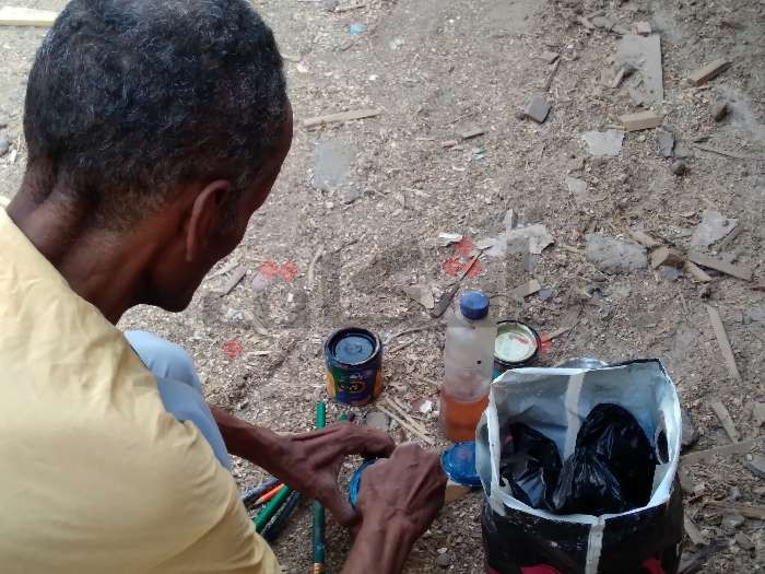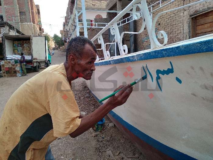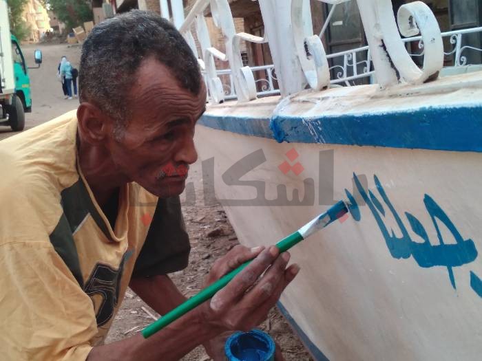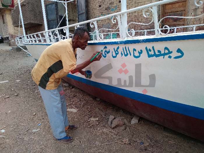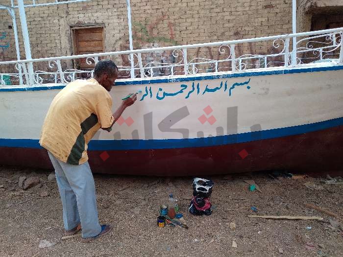 Mahmoud, a Nubian from the village of "Alambrakab" in the Nasr Al-Nuba district, has dedicated over 40 years to drawing and writing shop signs and home facades. His work includes crafting congratulatory phrases for occasions like Hajj, such as "May your pilgrimage be accepted, and your sins forgiven," as well as inscribing tombstones.