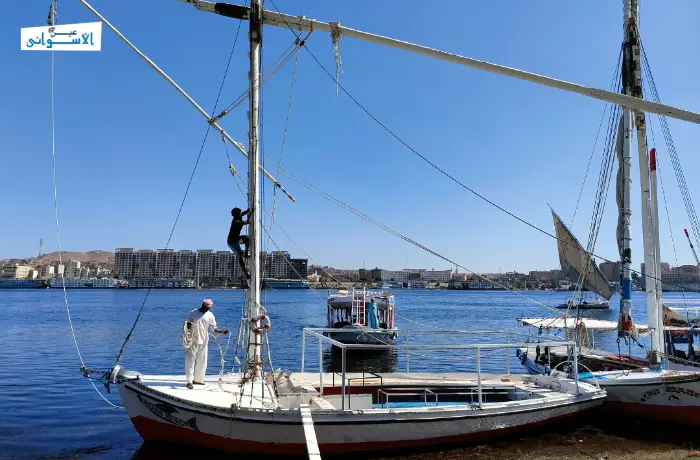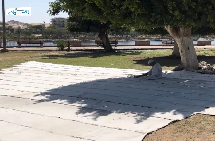 For fifty years, Saad spent his days dealing with boats, for he is one of the most distinguished craftsmen in designing and making boat sails in Aswan city. Despite being born in the rural Al-Ramadi village, Edfu town, his relationship started with the Nile while he was ten years old, “when I was a boy, I used to watch how boat sails were made, and I loved this profession and wanted to learn it without asking anyone to teach me”, Saad Told Ain Al-Aswani.