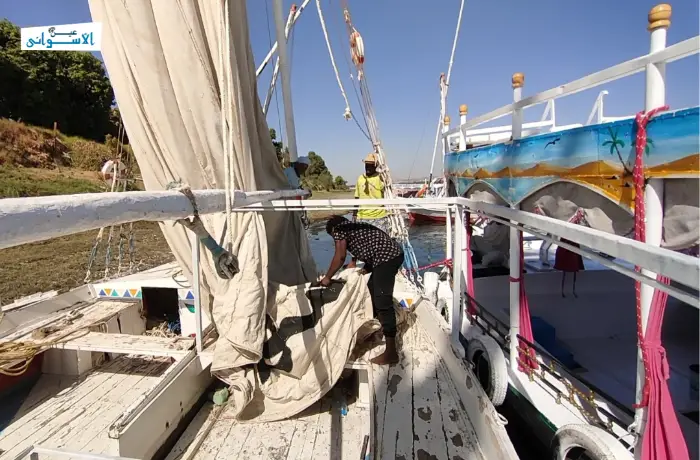 The cost of making a boat sail amounts to about 6,000 EGP, including labour and materials such as strings and ropes. The boat sails after the sail gets installed, and periods of low tourist activity are used for sails’ maintenance.