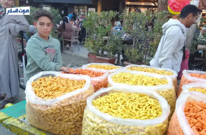 He clarified that chickpea with shell price ranges between 60 to 70 EGP, while peeled chickpea ranges between 100 to 110 EGP, and peanuts and sweets 80 EGP. Omar sells all kinds of sweets, like chickpeas, sesame, and Turkish delights.
