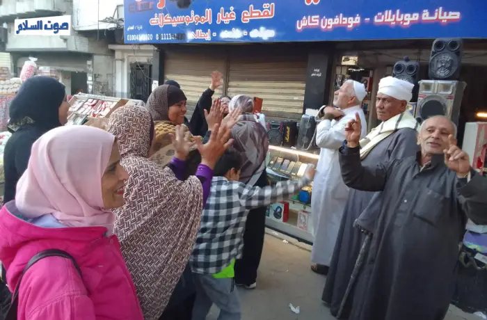 The driver dropped us at Abu Al-Rish, around 15-minutes’ walk to the square, the road was crowded with visitors coming to celebrate on the same day or days before, from Cairo and different governorates; the people’s numbers have been increasing starting midday.