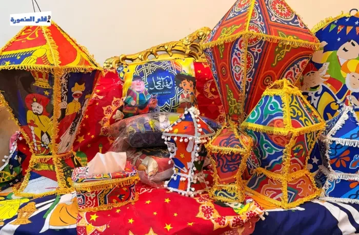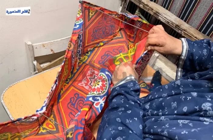 المشهد لا يبدو مجرد صناعة يدوية، بل طقسًا يوميًا تتبعه علا، ابنة مدينة المنصورة، منذ أربع سنوات، حيث تعمل كل ليلة قبل رمضان بأسابيع على صناعة الفوانيس اليدوية من قماش الخيامية الشهير، وتربط كل قطعة بحكاية بدأت بشغف بسيط.