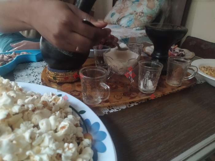 توقف الجلسة وتدق هاجر الباب على جارتها التي جاءت بالقهوة والبخور، تعرفت إليها خلال جلسة من الحديث النسائي والأغاني السودانية.