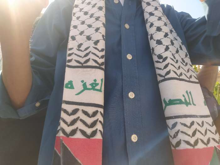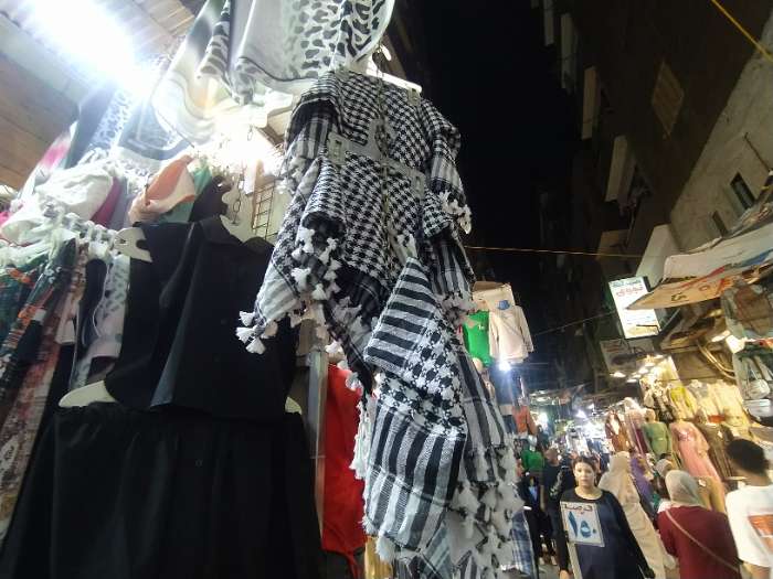 وداخل منطقة دار السلام بمحافظة القاهرة، يبيع عبدالرحمن، صاحب محل ملابس، الوشاح الفلسطيني، يقول: «وجدت أن كثيرًا من الزبائن يسألون عليه، لذلك قررت بيعه في المحل الخاص بي دعمًا للقضية الفلسطينية وضرورة نشر ذلك الرمز».