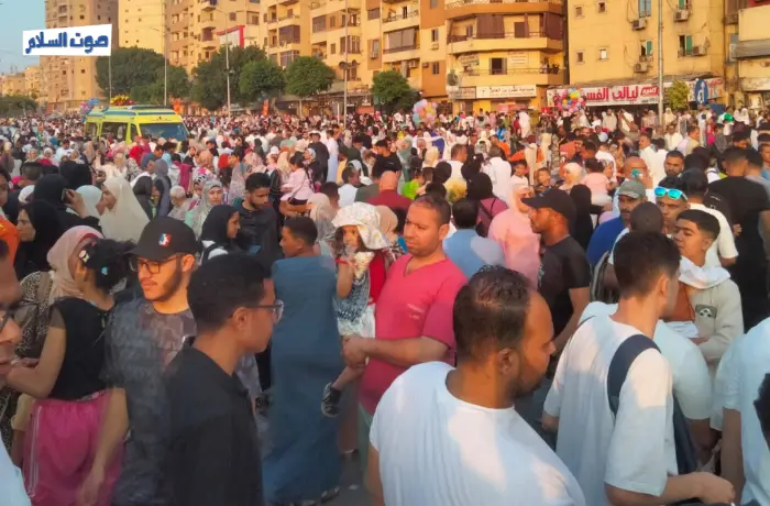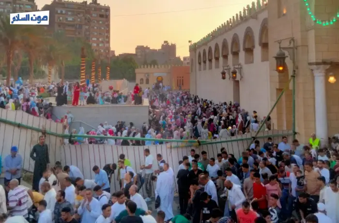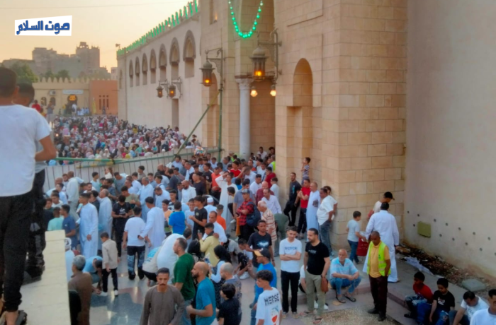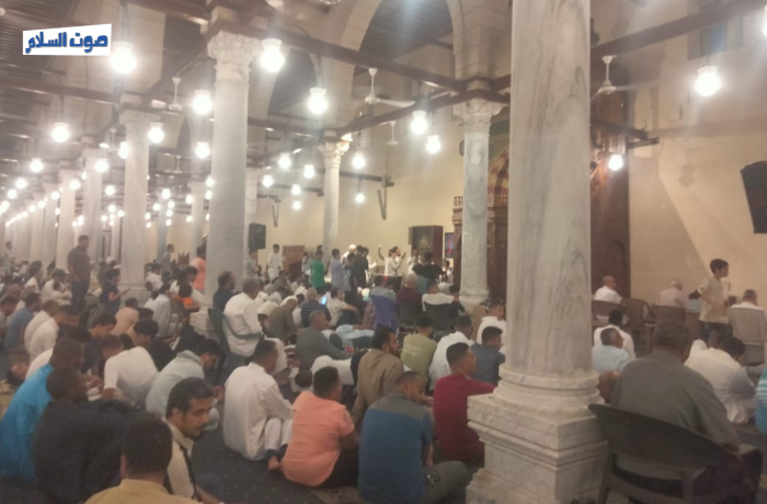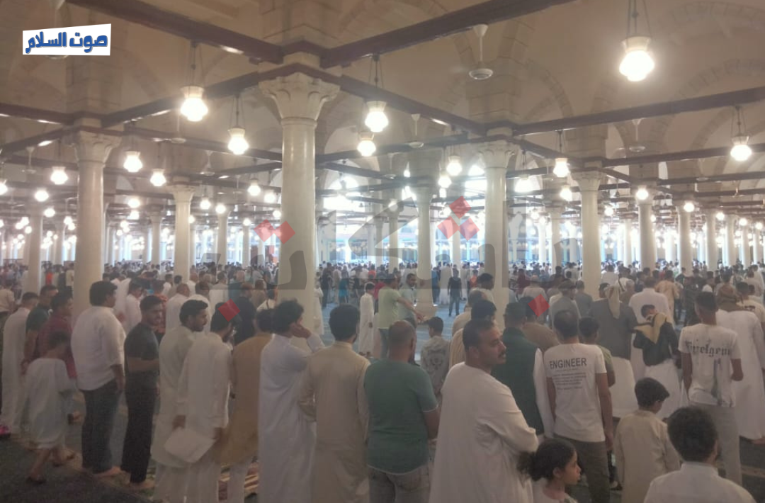 وتوزع المصلون ما بين داخل المسجد وخارجه حيث تمتد الساحة إلى محطة مترو مارجرجس لإستقبال المصلين وسط بهجة وسعادة الجميع.