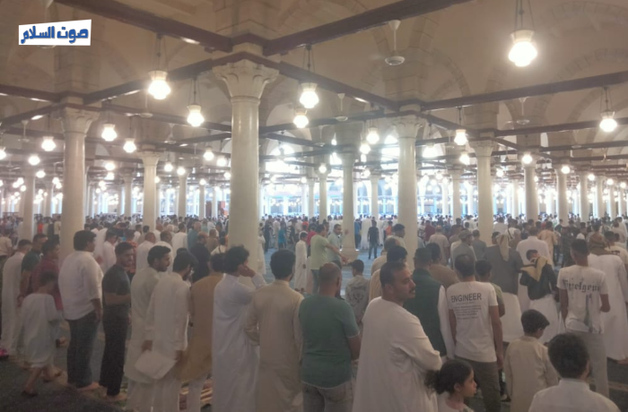 وشهد المسجد حضور آلاف المصلين من بعد صلاة الفجر وبعضهم من قبلها لحجز أماكن للصلاة من شدة الزحام والإقبال على المسجد.
