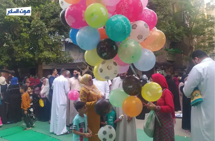 ومع انتهاء الخطبة بدأ الأهالي في مراسم الاحتفال بالعيد من خلال توزيع هدايا للأطفال وشراء "البلالين"، وتوزيع ألعاب للأطفال.