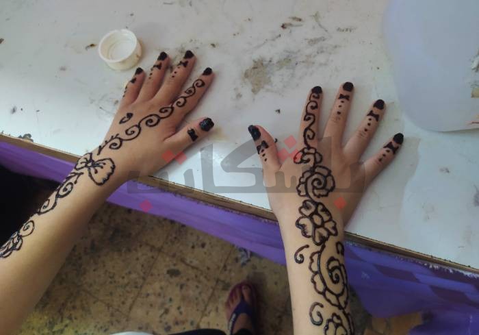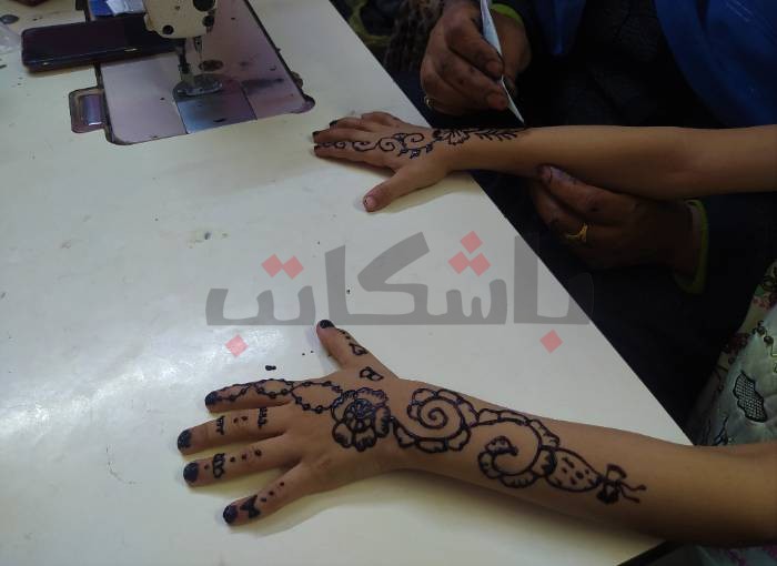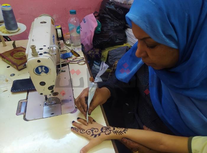 رسم الحنة وارتباطه بالعيد والأفراح عمومًا ليس غريبًا لدى فتحية التي تعتاد على ذلك من محيطها في أسوان، إلا أنها لاقت اقبالًا متزايد من سيدات الحي، وكأنها مساحة جديدة فتحت أمامهم بين خيارات ليست بالكثيرة، يقمن بها كمظاهر احتفال بالعيد.