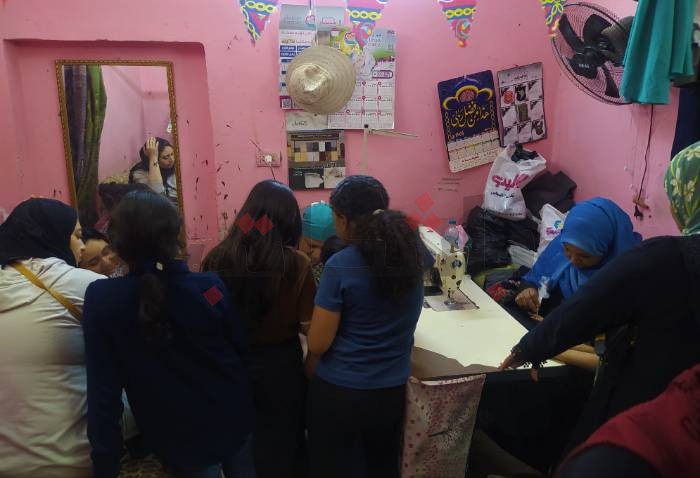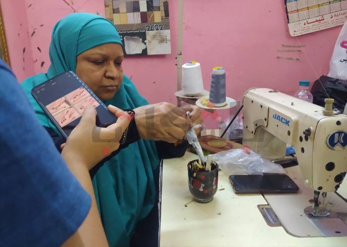 فى دائرة تجلس فيها السيدات، ترسم  الحنة على يدها، تقول دينا محمد، ربة منزل، أنها أول مرة لها ترسم الحنة فى محل فتحية، لكنها كل عيد ترسم الحنة فى أماكن أخري، لها ولبناتها الثلاثة، حتى تربي بهم عادة الانبساط فى العيد، ومؤخرًا قررت البحث عن حنانة أسوانية أو سودانية بدلاً من حنة الكوافيرات، لأنها متخصصة أكثر وبنفس سعر الكوافيرات.
