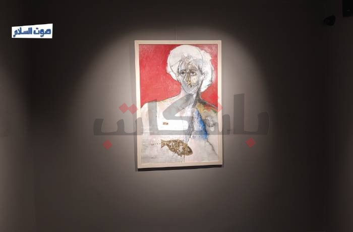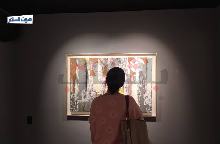 تصوير: مريم أشرف - فتاة تقف أمام إحدى لوحات معرض "ذاكرة أسماك المتوسط"