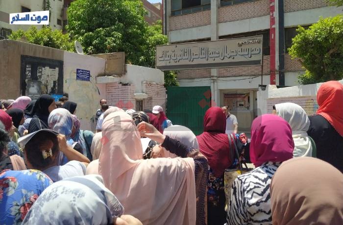 أمهات الطالبات ينتظرن أمام مدرسة جمال عبد الناصر بدار السلام